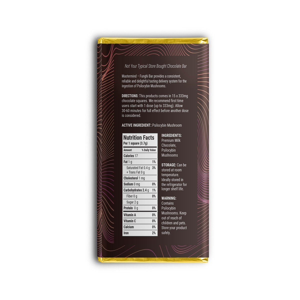 The Mastermind 5000mg Massimo Bar is not one for the faint of heart. This behemoth of a bar contains 5000mg’s of Mastermind’s premium blend of Psilocybe Cubensis and is not to be taken lightly. If you’re looking to go on a far-out journey, this is the bar for you! The 5000mg Milk Chocolate Bar contains 15 x 333mg square of pure bliss.