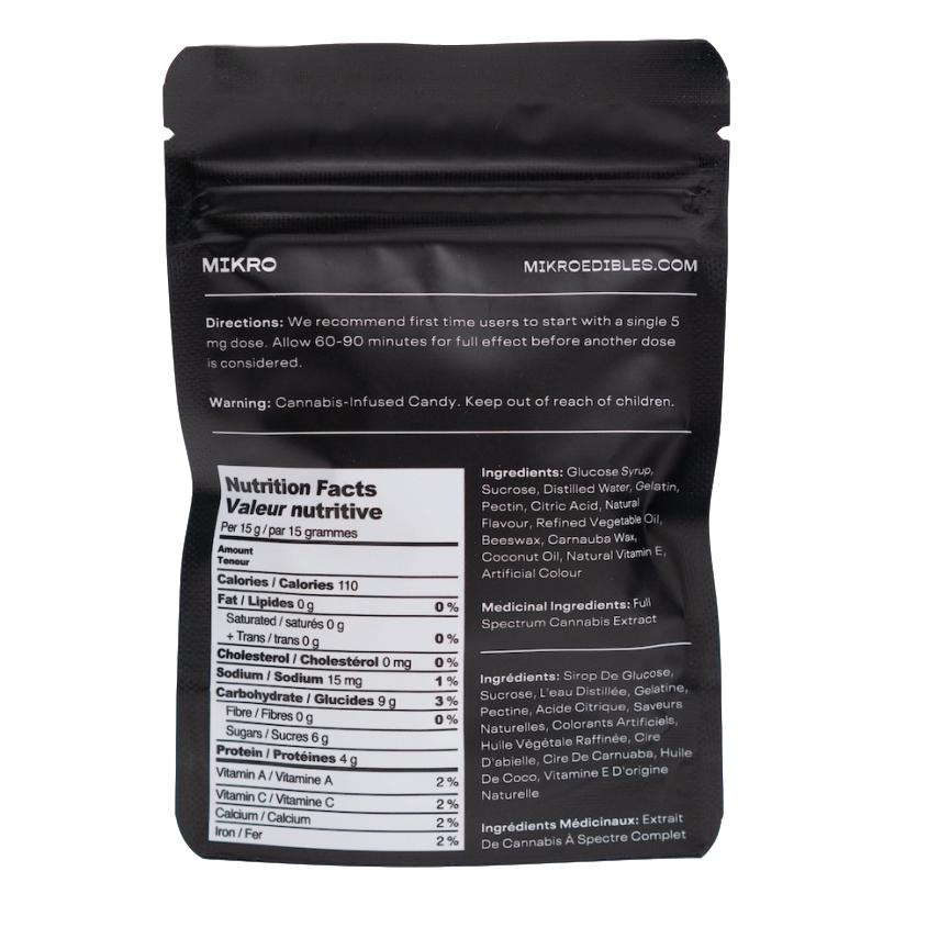Mikro – Cherry Gummies are cannabis-infused soft chews designed for microdosing, giving users the ability to start low and increase their dose slowly as needed. These gummies are flavored with a classic, sweet cherry taste, making them a tasty and discreet way to consume cannabis throughout the day.