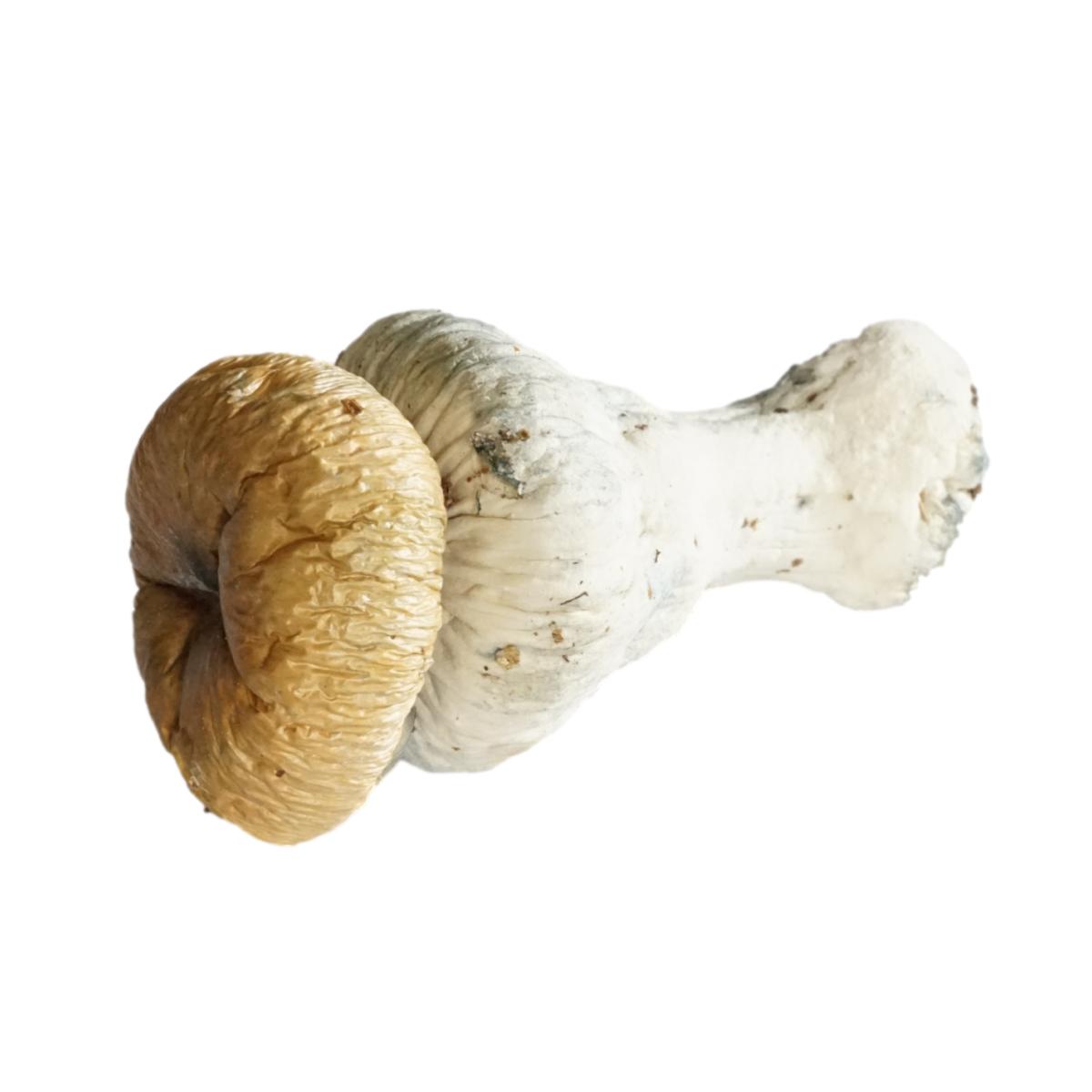 Stem: Thick, bulbous, and dense; often shorter and stubbier than typical cubensis